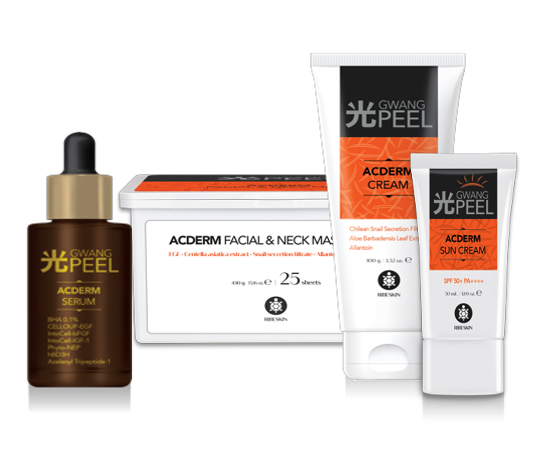 Czteroelementowy zestaw GWANG PEEL ACDERM to dedykowana rutyna regeneracyjna dla skóry trądzikowej. Zapewnia systematyczna pielęgnację skóry z trądzikiem na różnych etapach zaawansowania i kompleksową opiekę w trakcie trwającego 28 dni cyklu odnowy komórkowej, aż do odzyskania utraconego blasku.