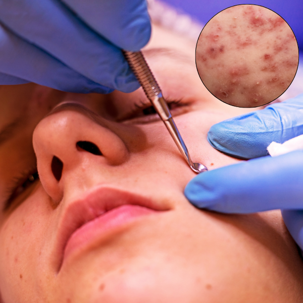 - Uszkodzenia skóry spowodowane oczyszczaniem i ślady po oczyszczaniu z powodu uszkodzenia porów